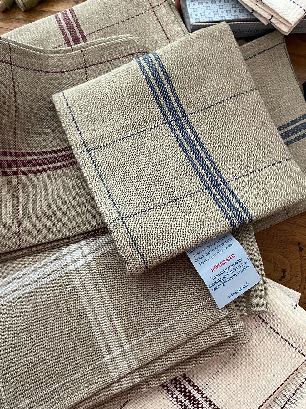 Torchon à broder lin naturel 12 fils au cm - carreaux bleus - SAJOU